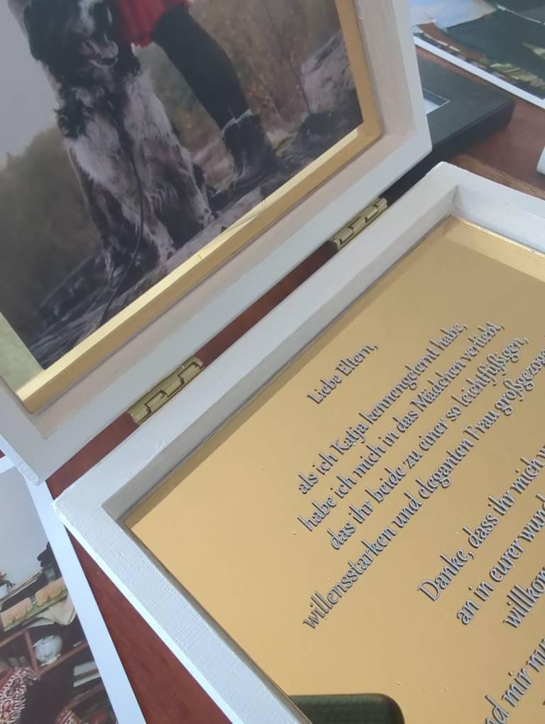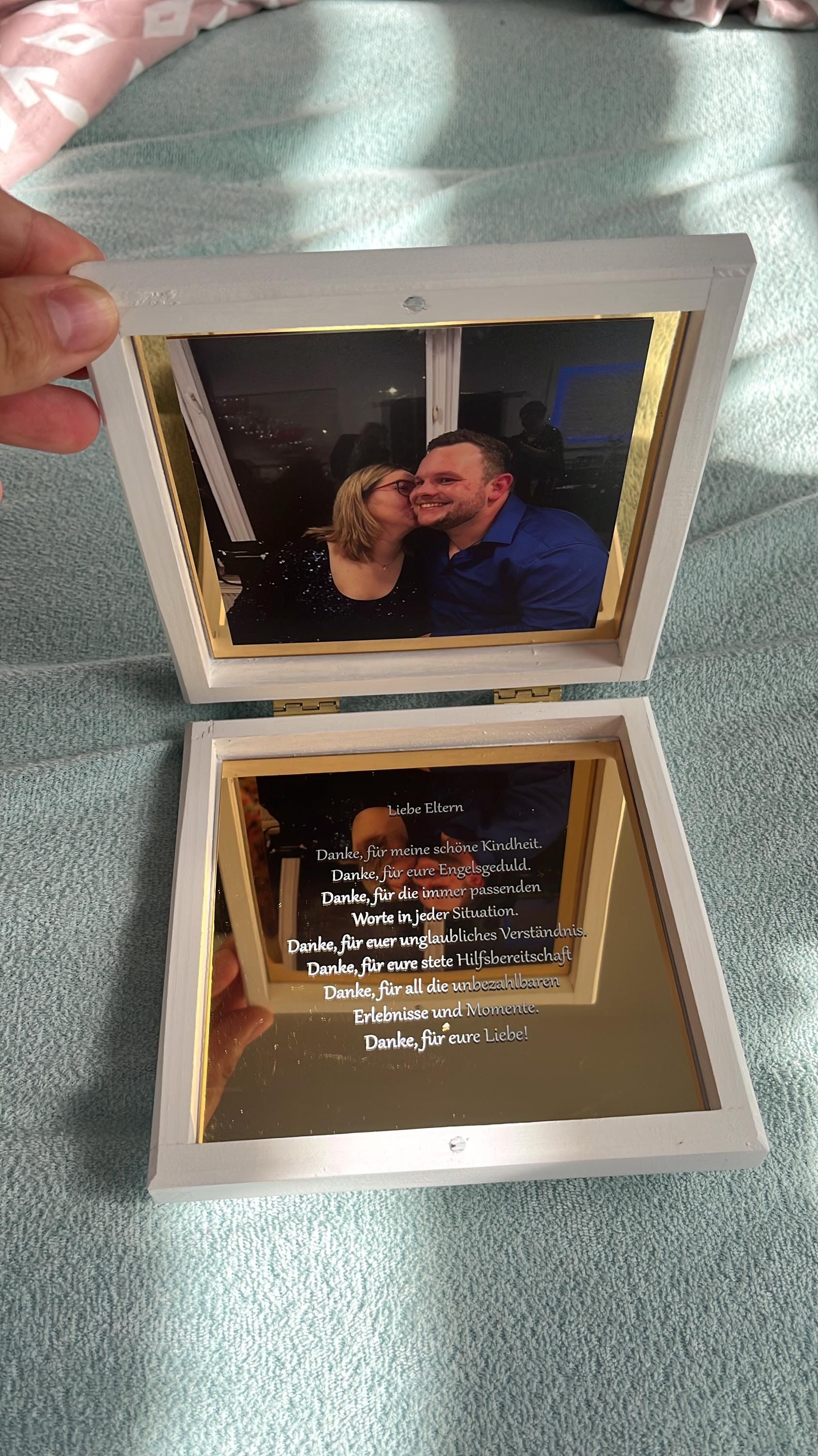 Die Boxen sind wunderschön und erwecken jedes Mal bei die Emotionen. Unsere eltern haben sich sehr gefreut.